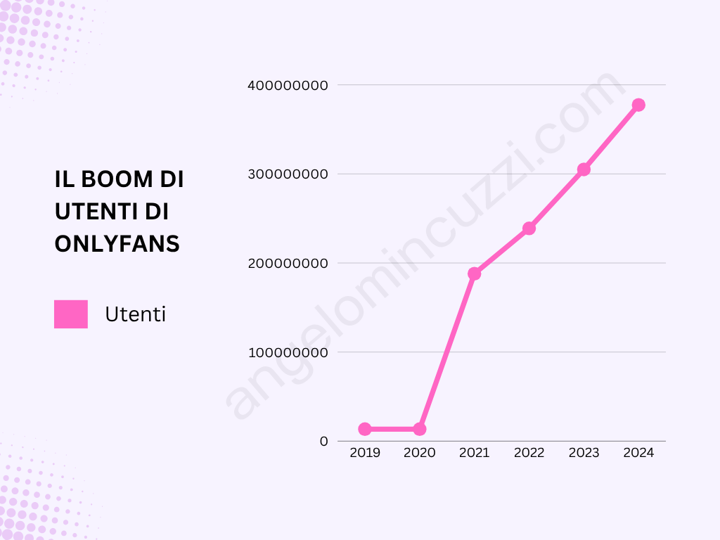 Nel 2019 i performer che utilizzavano la piattaforma erano solo 348mila. Nel 2024 erano balzati a 4.634.000. Gli utenti del sito (i “fan”) sono esplosi da 13,4 milioni a 377.456.000 in tutto il mondo.